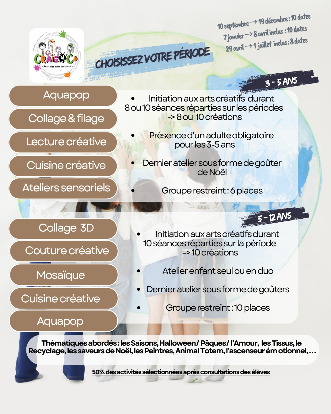 - A noter ! La dernière date sera sous forme d'un goûter créatif