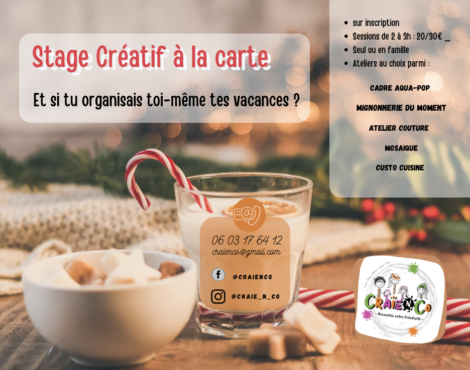 Offrez à vos enfants/ados un atelier/stage de la durée de votre choix. Vous pouvez même privatiser l’atelier pour votre famillle ou vos amis (mini de 4 personnes)